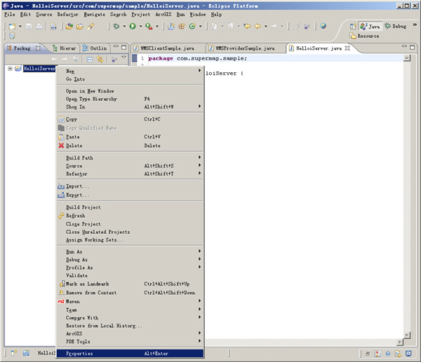 在 Eclipse 平台窗口中,鼠标右键单击工程名,选择 Properties,如下图所示。