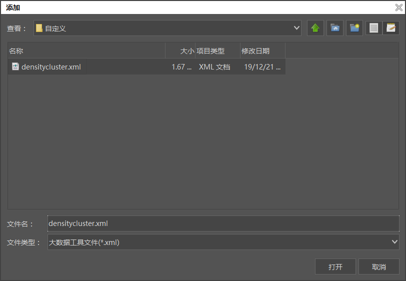 启动SuperMap iDesktop X,打开工具箱。右键单击工具箱中的“大数据工具”,选择右键菜单中的“添加大数据工具”,即可打开添加窗口。