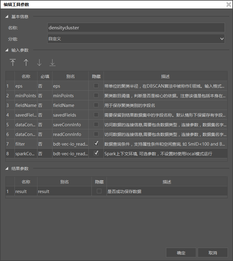 编辑好相对应的参数后,点击确定,模型会添加至工具箱中大数据工具下。