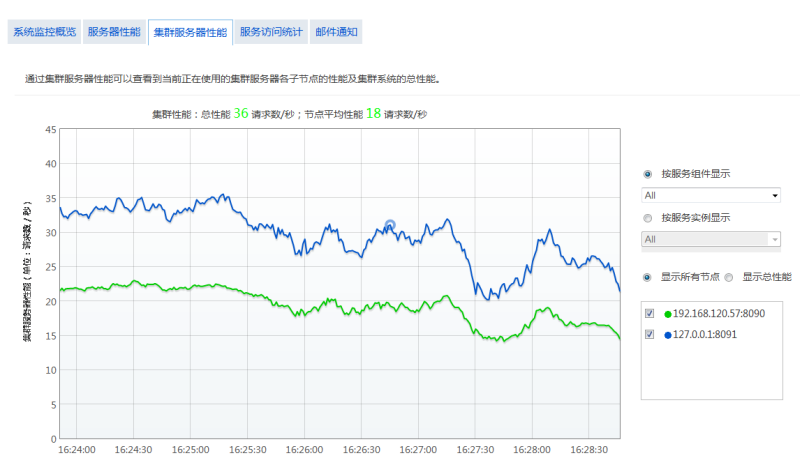SuperMap iServer 支持对集群状态进行监控,包括集群内各个子节点的运行状况与并发请求访问量。通过子节点的监控,可以查看集群体系中各个子节点的当前并发访问量,也可以查看各个子节点平均的访问量。而服务器监控的内容包括指定服务组件的访问量、指定服务实例的访问量。
