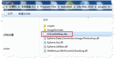 本示例所使用的插件为:“COLLADAMax.dle“。