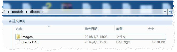 导出DAE模型操作完成后,DAE格式的模型将存放于目标路径下,其中还包括了一个“images”的文件夹,此文件夹存放着模型的纹理图片。